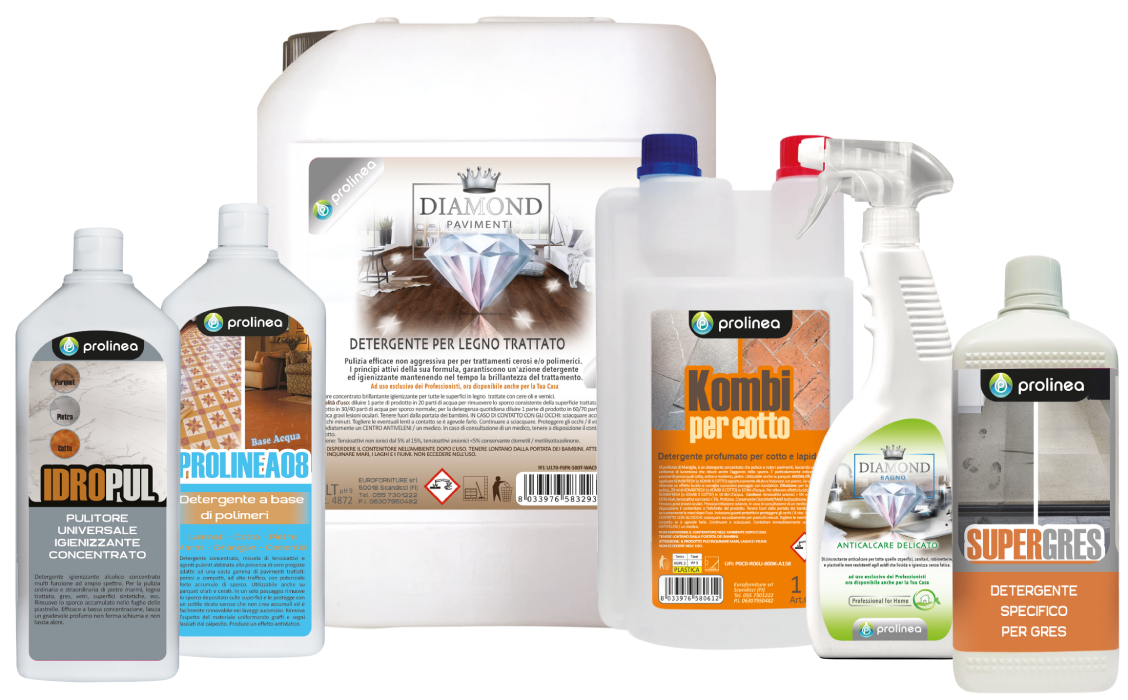 Produzione propria e commercializzazione di articoli a marchio Prolinea per una pulizia profonda e meticolosa di superfici e pavimenti.